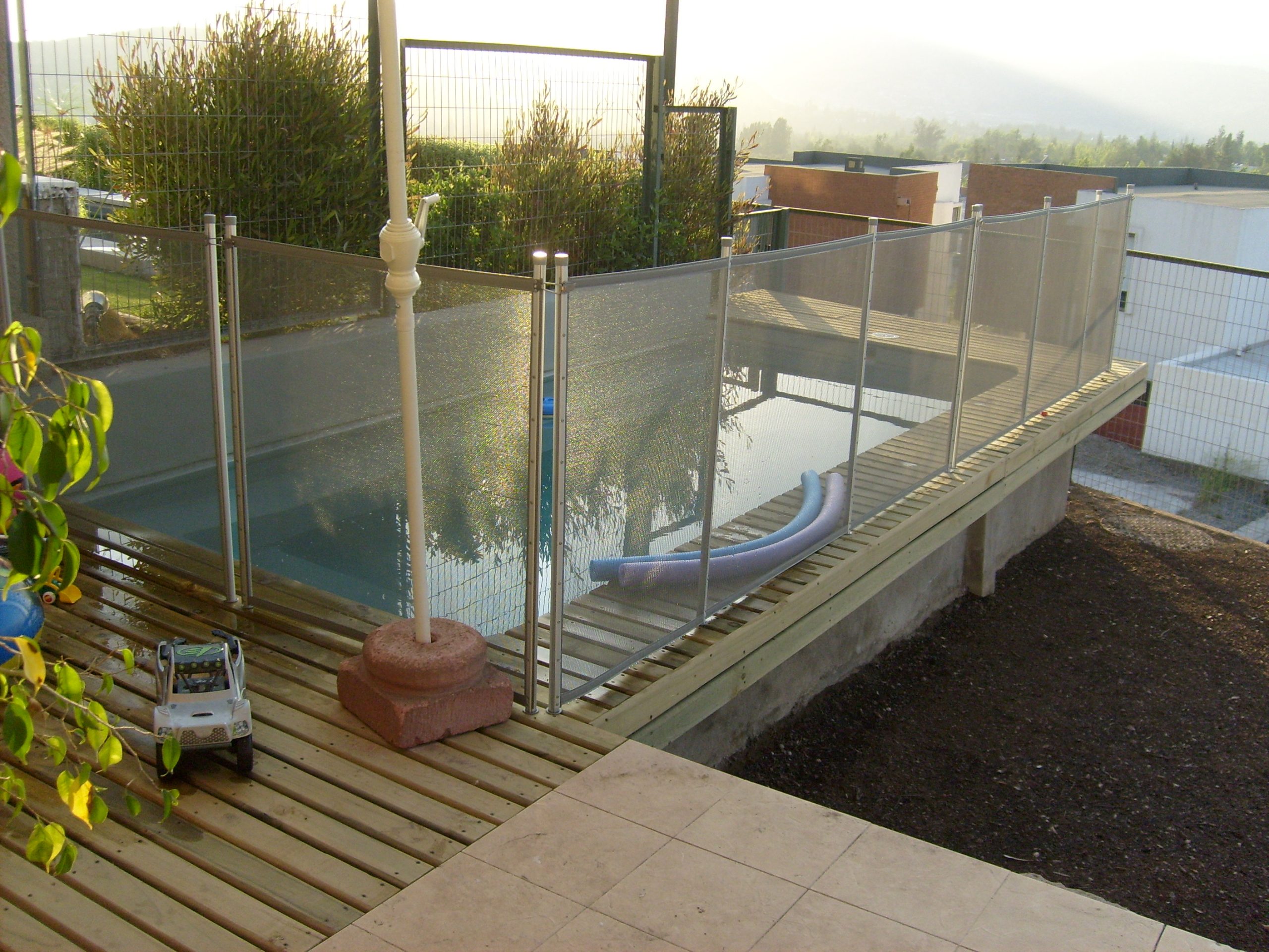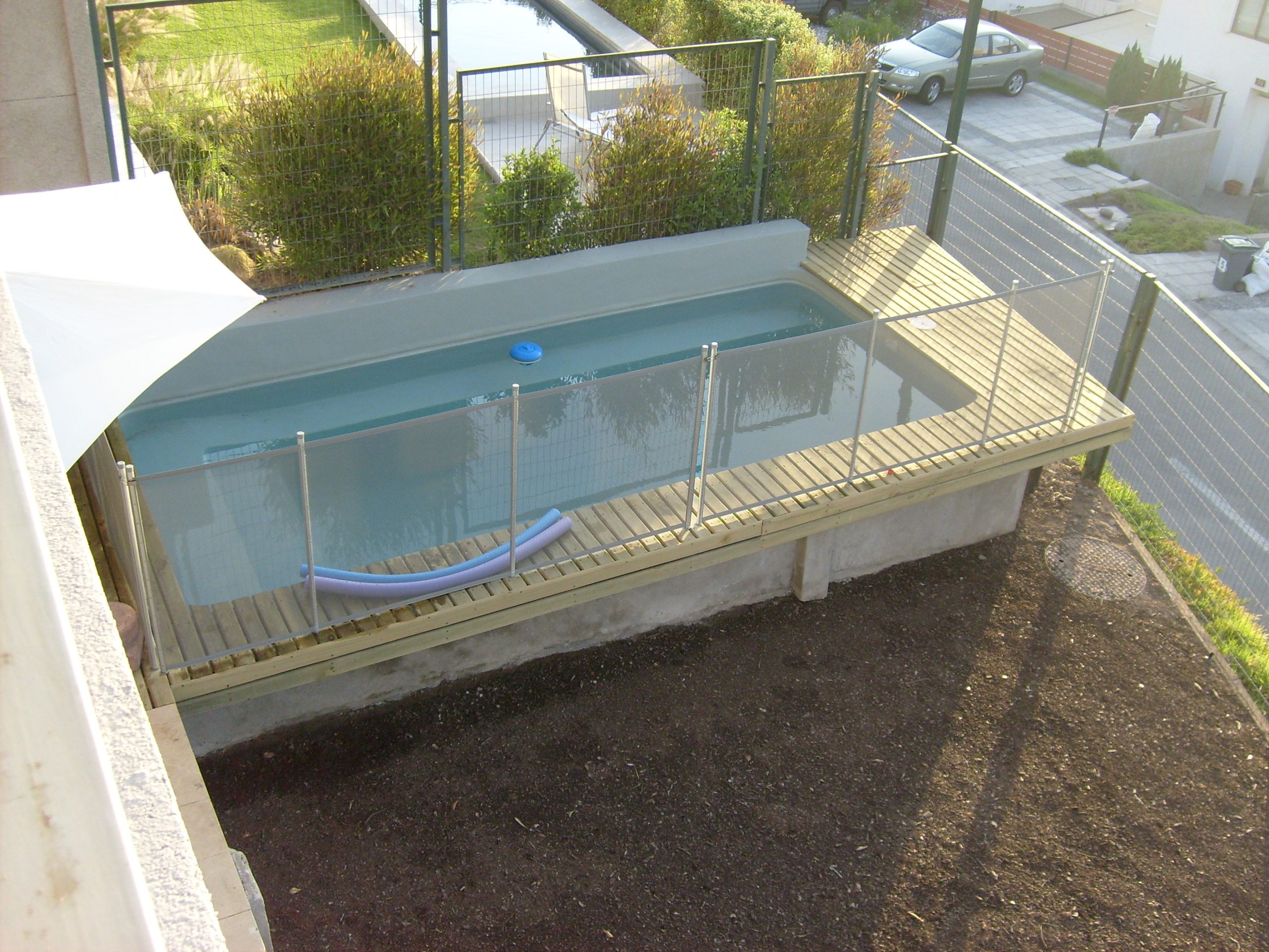 Proyecto de diseño e instalación de piscina en altura con deck de madera en el sector de La Dehesa.
